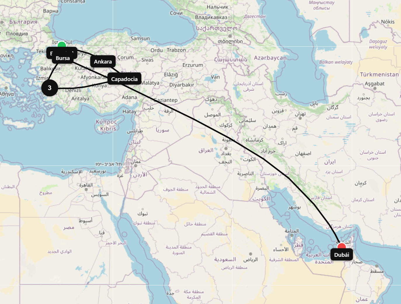 Estambul, Ankara, Capadocia, Pamukkale, Selcuk, Kusadasi, Bursa, Dubái