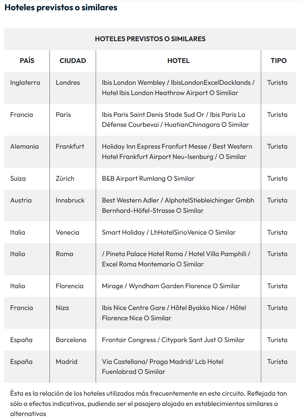 ❖ El orden de las visitas puede variar dependiendo de la ubicación del hotel del grupo.