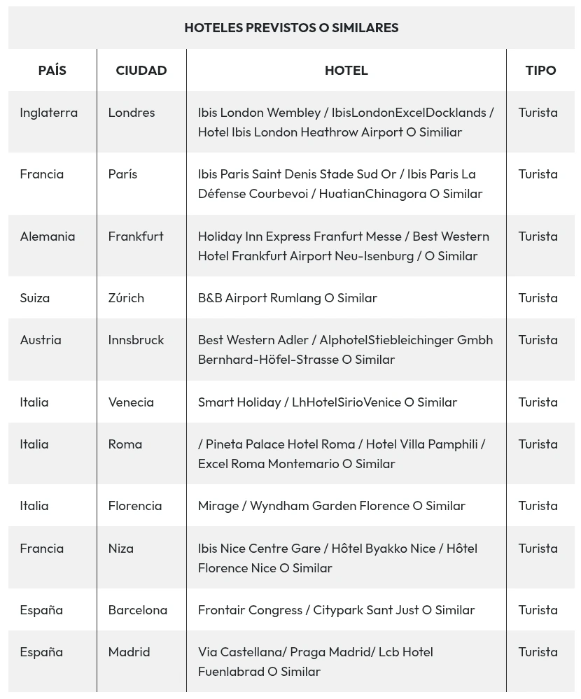 ❖ El orden de las visitas puede variar dependiendo de la ubicación del hotel del grupo.