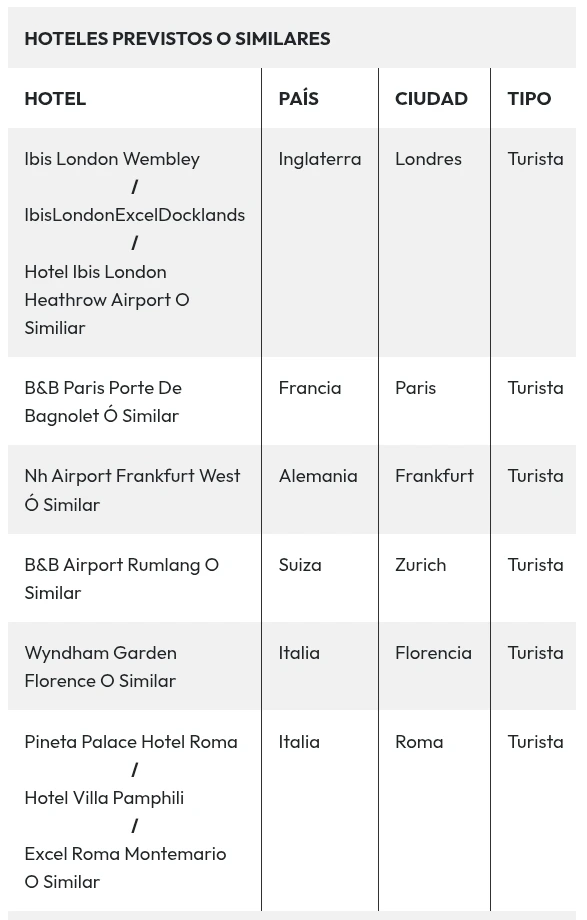 Importante: Si la visita al Castillo de Windsor cae en martes o miércoles, el castillo estará cerrado, por lo que será reemplazado por la Torre de Londres. El orden de las visitas puede variar dependiendo de la ubicación del hotel del grupo.
