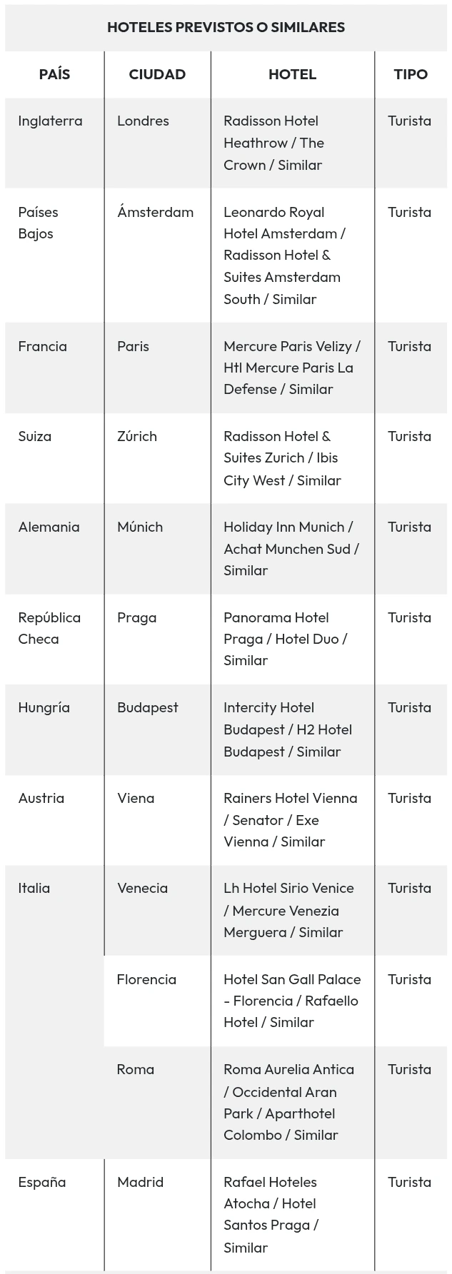 * Este programa podrá operar en sentido inverso durante 2026. Le sugerimos consultar su itinerario según la fecha de salida correspondiente. *