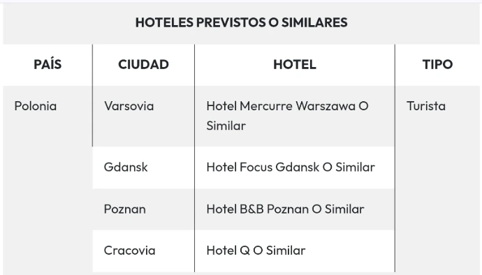 - Excursión opcional al Castillo de Malbork y la ciudad de Elblag