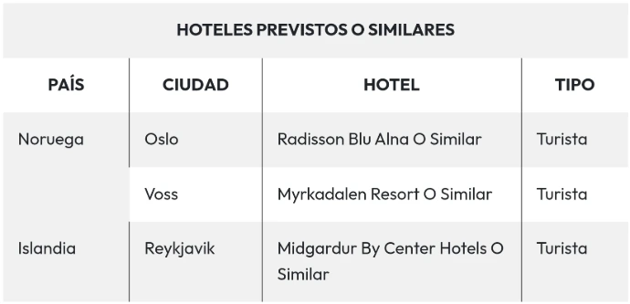 Nota Importante: Algunos grupos se alojarán en las zonas de Kinsarvikvegen, Gol y Geilo.