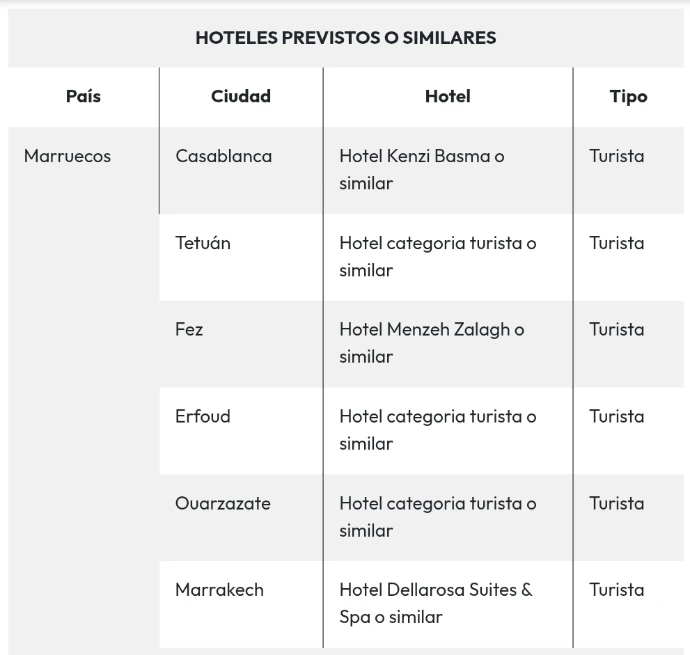 Desayuno. Salida temprano por la mañana en dirección al majestuoso desierto marroquí, una de las experiencias más inolvidables del viaje. Se pasará por Ifrane y Midelt, con una pausa para admirar los paisajes del Medio Atlas. La primera parada será en la pintoresca ciudad de Ifrane, conocida como “la pequeña Suiza” por su arquitectura de estilo europeo, sus calles ordenadas y su clima templado. Ubicada en el corazón del Medio Atlas, es un destino muy apreciado por los marroquíes. Continuación hacia Midelt, una ciudad situada entre el Medio y el Alto Atlas, famosa por su producción de manzanas y su entorno montañoso. La ruta continúa y finaliza en Erfoud, una pequeña ciudad oasis que sirve como puerta de entrada al desierto del Sahara. Este lugar es conocido por sus fósiles prehistóricos y su proximidad a las grandes dunas de Merzouga. Llegada a Erfoud. Alojamiento.