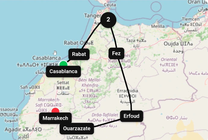 Desayuno. Salida temprana hacia Marrakech, una de las ciudades más emblemáticas y vibrantes de Marruecos. En el camino, se realizará una parada en la Kasbah de Ait Ben Haddou, una antigua ciudad fortificada declarada Patrimonio de la Humanidad por la UNESCO en 1987. Este espectacular conjunto ha sido escenario de numerosas películas y destaca por su arquitectura tradicional bereber y su ubicación sobre una colina que domina el valle. La ruta continúa atravesando los paisajes montañosos del puerto de Tizi n'Tichka, el paso de carretera más alto del país, que ofrece vistas impresionantes de las montañas del Alto Atlas, pueblos rurales y terrazas de cultivo. Llegada a Marrakech. Alojamiento.