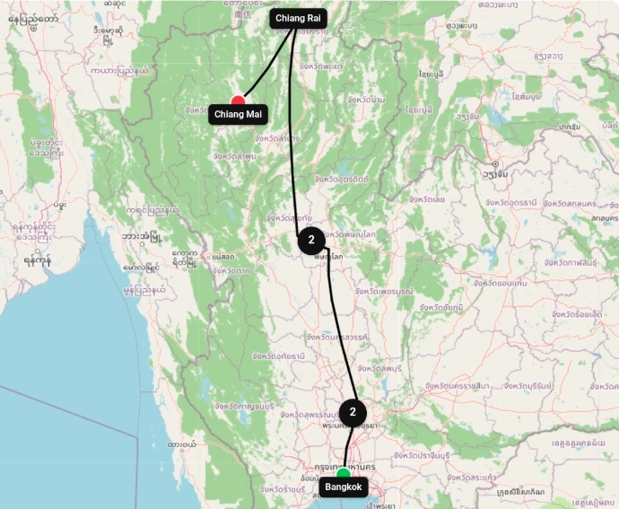 Desayuno. Esta mañana nos espera el más que popular Wat Rong Khun o Templo Blanco, un templo budista contemporáneo muy original, diseñado por un arquitecto tailandés que le dio una forma y color específicos; el blanco casi inmaculado es la representación de la pureza. Más tarde sugerimos realizar la excursión opcional (con costo adicional) "TRIANGULO DE ORO": Nuestra primera parada es el Museo del Hachís, donde obtendremos información sobre la región, que ha sido el centro de la producción ilegal de hachís durante siglos. Luego, pasamos a la región fronteriza del triángulo dorado. Desde el mirador alto de la colina, observamos la magnífica vista formada por la confluencia de los ríos Mekong y Ruak, y luego, en el recorrido en bote por el río Mekong, pasamos por las fronteras de Myanmar y Laos. Luego, nos dirigimos al pueblo de Mae Sai en la frontera de Myanmar, ubicado en el punto más al norte de Tailandia, y visitamos el mercado fronterizo. Tiempo libre para compras en el punto fronterizo. Al final de nuestro recorrido, visitaremos los mundialmente famosos campos de té de Chiang Rai en el camino. Continuación hacia Chiang Mai por carretera en un trayecto de aproximadamente 3 horas. Alojamiento.