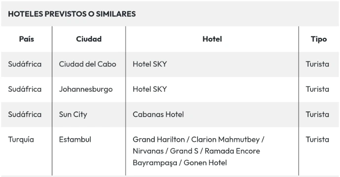 A la hora indicada traslado al aeropuerto de Johannesburgo para abordar vuelo con destino a Estambul.